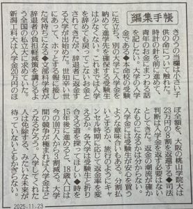 この問題は、2006年の最高裁判決で、「入学金は入学を許可されたことの対価であり、大学に返還義務はない」との判決が下された一方で、 2025年6月に文部科学省が全国の私立大学に「入学金の負担軽減」を求める通知を出したという、司法と行政の方向性の違う判断によってより混乱する方向に向かっているように思えます。