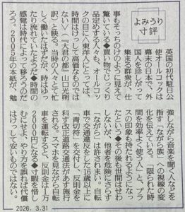 前置きが長くなりましたが、昨日(2026年3月31日)の読売新聞夕刊の「よみうり寸評」の記事にこの「時間の感覚」に関連するかもしれない内容が書かれていましたので、以下該当部分を引用します。