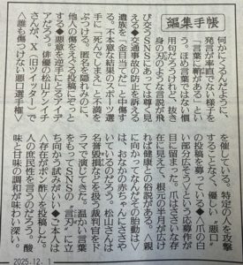 本日(2025年12月1日)の読売新聞朝刊の「編集手帳」が、「こんなほっこりするSNSの活用の仕方があったんだ!」と嬉しくなるネタを紹介していましたのでご紹介します。