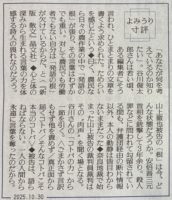 皆さん、こんにちは。 昨日(2025年10月30日)の読売新聞の夕刊の「よみうり寸評」にまたまた興味深い記事がありましたのでご紹介します。 それは「言葉の力」に関する考察についてです。 重要部分を引用します。 「『あなたが何を考えているのか知りたい』。谷川俊太郎さんは若いころある編集者にそう言われ、ひとまとまりの文章を書くように求められた。ためらいを感じたという。曰く、農民なら日々の農 ...続きを読む